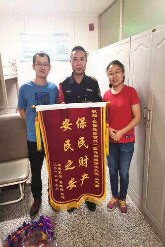 9月9日,丢失手机的那名女子黄某特制作了一面印有“保民财产 安民之安”的锦旗来到外科楼,赠送给班长马立新,对他及当晚参与抓获犯罪嫌疑人的保安员们表示衷心的感谢。