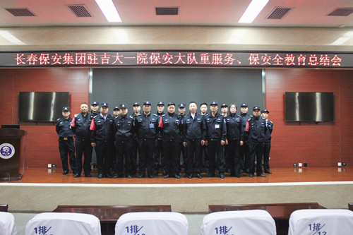 2019年10月22日上午8时30分,朝阳分公司驻吉大一院保安执勤队在吉大一院五楼会议室召开了“重服务、保安全”教育总结会。朝阳保安分公司经理田红功、吉大一院保卫部、院消防办、朝阳公安分局驻医院警务室相关领导及100名保安员参加了会议。