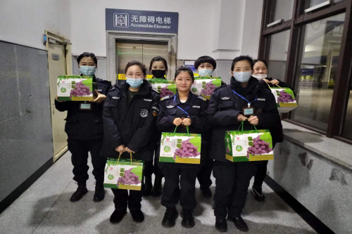 在白城车务段,保安集团驻勤白城站、松原站、大安站、乌兰浩特站安检员们,收到了公司为她们准备的“甜蜜水果”。安检队负责人将慰问品逐一发放到姑娘们的手中,送上节日的美好祝福,希望大家继续发扬长保精神,立足岗位,全心全意服务铁路和人民群众。