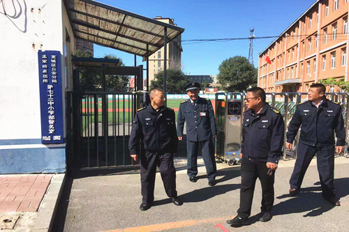 文教大队七十二中小学部保安执勤岗检查现场