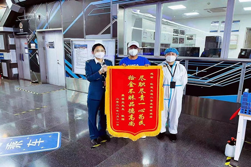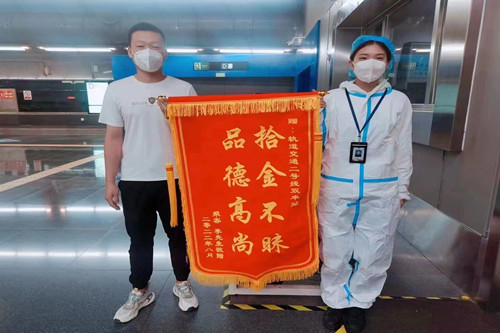 8月11日下午15时30分,一名男乘客把包落在了西环城路站A口安检点。安检员周丹、李沛瑶看见了就捡了起来,包里有不少贵重物品。不久,这名乘客回来找自己丢失的包 。经确认无误后,两名安检员把失物归还给失主。8月17日,这名男乘客来到地铁站,向两名安检员赠送了一面锦旗表示感谢。