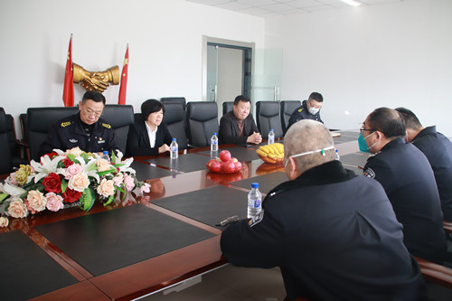 2023年1月16日下午,吉林省公安厅治安管理总队保安监管支队支队长李伟等三位领导莅临长春保安集团调研、指导安保工作。长春保安集团总经理杨向荣,常务副总经理范胜田,副总经理付爱民与领导们进行了座谈。