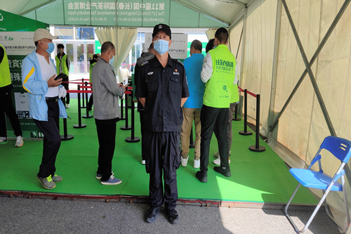 从9月8日茶博会布展起至9月13日撤展清场止,二道分公司中队长张勇带领145名执勤保安员紧紧围绕“绝对安全、万无一失”的工作目标,严格执行安保勤务方案,全力做好入口安检、车辆管理、安全引导、巡逻检查、秩序维护、突发事件应急处置等安保工作。
