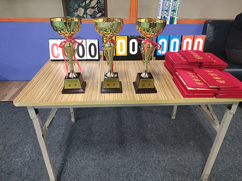 当天的比赛现场分为男子单打、女子单打、男女混合双打三项,以抽签的形式进行两两对决,上半场为半决赛,下半场为决赛。各部门均派出了优秀的选手参赛,比赛非常紧张和扣人心弦。比赛场面精彩而热烈,选手们一张一驰的动作颇有专业运动员风范,每名参赛选手精彩的球技发挥得得淋漓尽致,赢得了现场观众的一片助威声、欢呼声和呐喊声。经过激烈角逐,最终张忠峰获得男单一等奖,韩月华获女单一等奖;张忠峰、栾婧获混双一等奖;周斌获得男单二等奖,栾婧获得女单二等奖励;周斌、李雪获得混双二等奖;张旭、王志刚获得男单三等奖;李尚津、杨洁获得女单三等奖励;王志刚、杨洁获得混双三等奖。