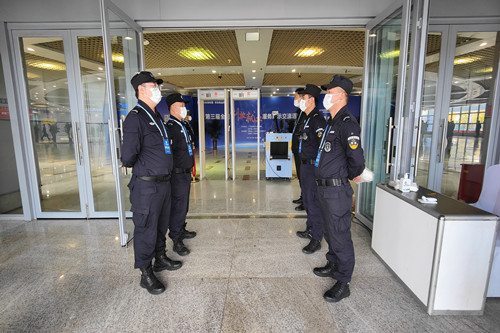 活动现场,车辆管控安保班队严格落实车辆入场通行证检查和引导车辆停放,严防道路拥堵;各展馆进口的安检班队负责对参展商及入场观众进行双码核验、体温测验、口罩佩戴及进馆引导、执机检查、手执扫描、手检等岗位保安员相互协作,严防疫情隐患和违禁物品进入场馆;巡逻安保班队全面加强各项安全措施管控,坚持不间断、全区域安全隐患排查,及时消除各类不安全因素,严防发生灾害事故,从而确保了本次活动安全有序的成功举办。