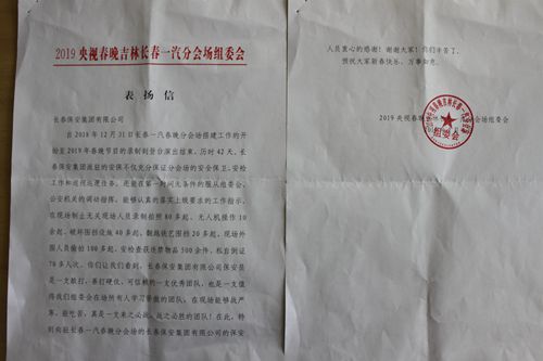表扬信中写到,在历时42天的安保工作中,“长春保安集团派驻的安保不仅充分保证分会场的安全保卫、安检工作和巡视任务。还能在第一时间无条件的服从组委会、公安机关的调动指挥,能够认真贯彻落实上级要求的工作指示,在现场制止无关人员录制拍照80多起、无人机操作10余起、现场外围偷拍100多起、安检查获违禁物品500余件、私自倒证70多人次。你们让我们看到,长春保安集团有限公司保安员是一支敢打、善打硬仗,可依赖的一支优秀团队,也是一支值得我们组委会在场所有人学习骄傲的团队,在现场能够战严寒,能吃苦,真是一支来之必战,战之必胜的团队!”