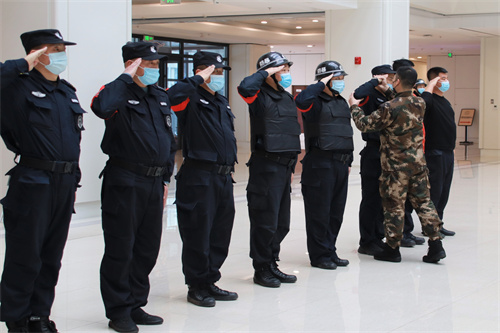 演练开始前,全体参加演练的保安员进行了队列演示,而后,武警战士针对立正、稍息、跨立、敬礼、停止间转法、行进与立定等队列动作给予现场指导。保安员们在学习过程中精神饱满、动作规范、听令而行、闻令而动、令行禁止,展现了长春保安队伍良好的个人素质和精神风貌。