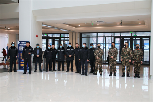 1月10日中午,在全国第36个“110宣传日”来临之际,长春保安集团朝阳分公司组织全体驻勤保安员参加了市委、市政府开展的“110宣传日”反恐防暴演练。市政府保卫处处长李洪军、科长周东伟,驻勤武警指导员王旭和三名武警战士,驻勤派出所所长李征及部分干警,长春保安集团总经理助理兼朝阳分公司经理田红功、中队长孙占祥莅临现场指导并观摩了演练。