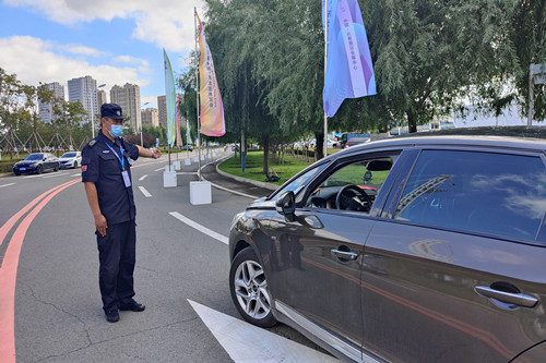 在执勤过程中,保安员们加强安全防范,积极疏导过往行人,维护秩序的同时,积极做好便民服务。看到年迈的老人,他们主动搀扶;见有问路的行人,他们热情的指引方向;遇到有问题的宾客,他们积极帮忙解决困难。正是有了众多保安员的无私付出,才有了国内外来宾的开心而至、满意而归。从日出到黄昏,他们用汗水送走了一拨又一拨的游客。园区内外,他们身穿的保安蓝格外醒目,他们友好而忙碌的身影,在这个色彩缤纷的季节里,流动出了一曲动人的音符。他们热情周到的服务深受观展群众和组委会的好评。